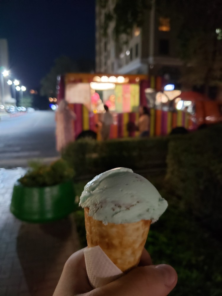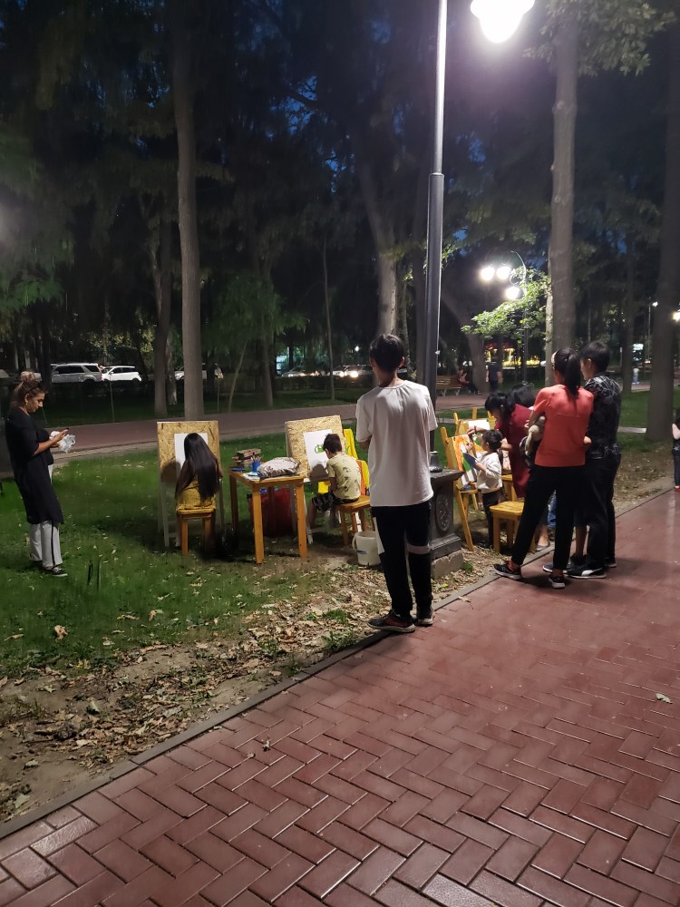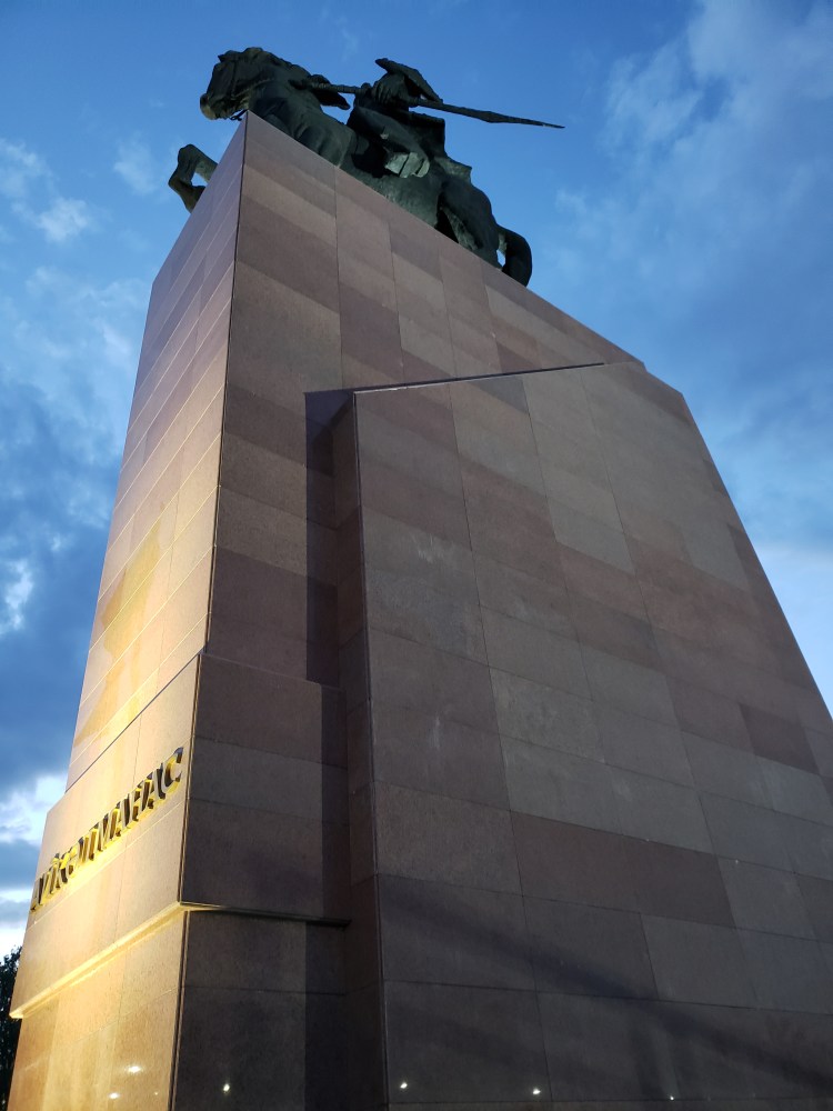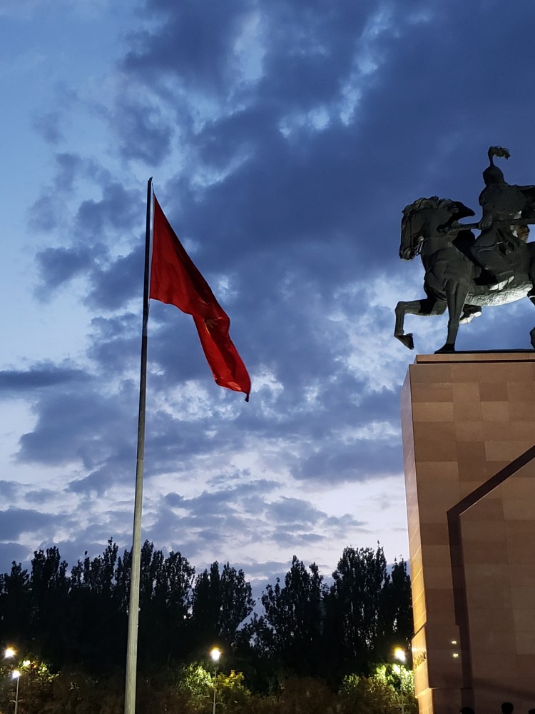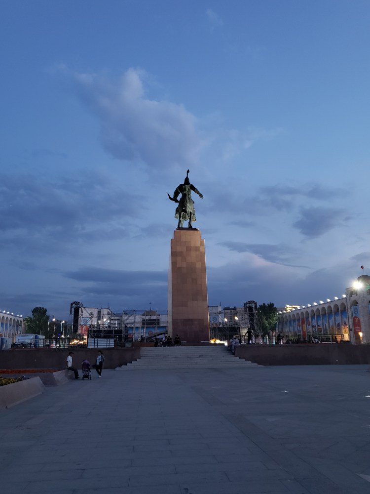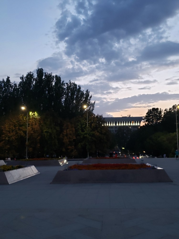 On the evening of August 29th, I decided to take a bit of a walk around the city, with the goal of seeing what was going on the main square during the leadup to Independence Day on the 31st. The weather was perfect for a stroll and I enjoyed spending some time just snapping photos. As I went through the park, I grabbed the chance to have some ice cream (mint chocolate chip, obviously) and got to see how people spend a normal summer Sunday evening in Bishkek. There were lots of areas for kids, and lots of kids using those areas. In general, it seems like a city with a lot of youth in it, which is sort of refreshing. The main square, which had been pretty empty a week ago, was busy now in the days prior to Independence Day – they have a big concert stage set up, and lots of vendors and people of that sort were there even after 9 at night. I am very excited to see how they celebrate tomorrow.