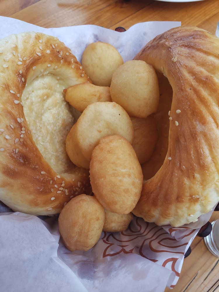 Today on the 30th, I had the opportunity to go with my fellow Americans to dinner with the overall director of the London School. We ended up at an excellent traditional-style Kyrgyz restaurant where we got these interesting unsweetened fried dough balls, a shepherd’s pie-type thing that I really wish I got the name of, and some Kazan Kebab that tasted more middle-eastern than anything. The conversation with the director was lovely – she had actually been to Portland to learn how being in a homestay in a foreign country feels and talked a lot about how much she liked it.
