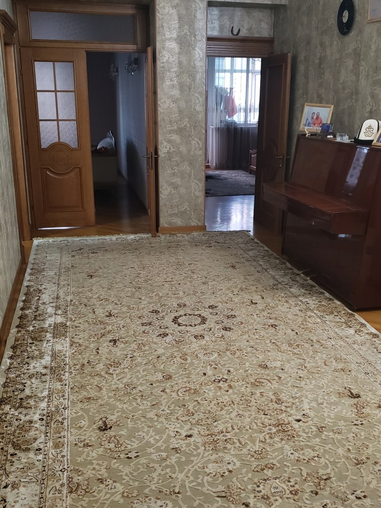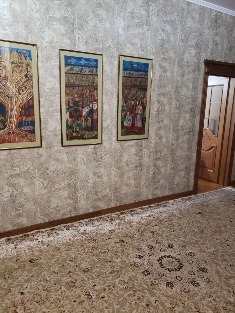 I also received a request for some photos of my living space, so here you go: (from top to bottom, left to right) the main entry area into the apartment, behind which you can see the living room area and a bedroom; some of the art on the wall that leads to the kitchen and living spaces in the back; and then my room – including the new dresser that I helped get out of another apartment, strap to the top of a Zhiguli, and lug up and down several several stairs, the effects of which I still feel quite acutely – with its view out the window at the mountains just outside the city.