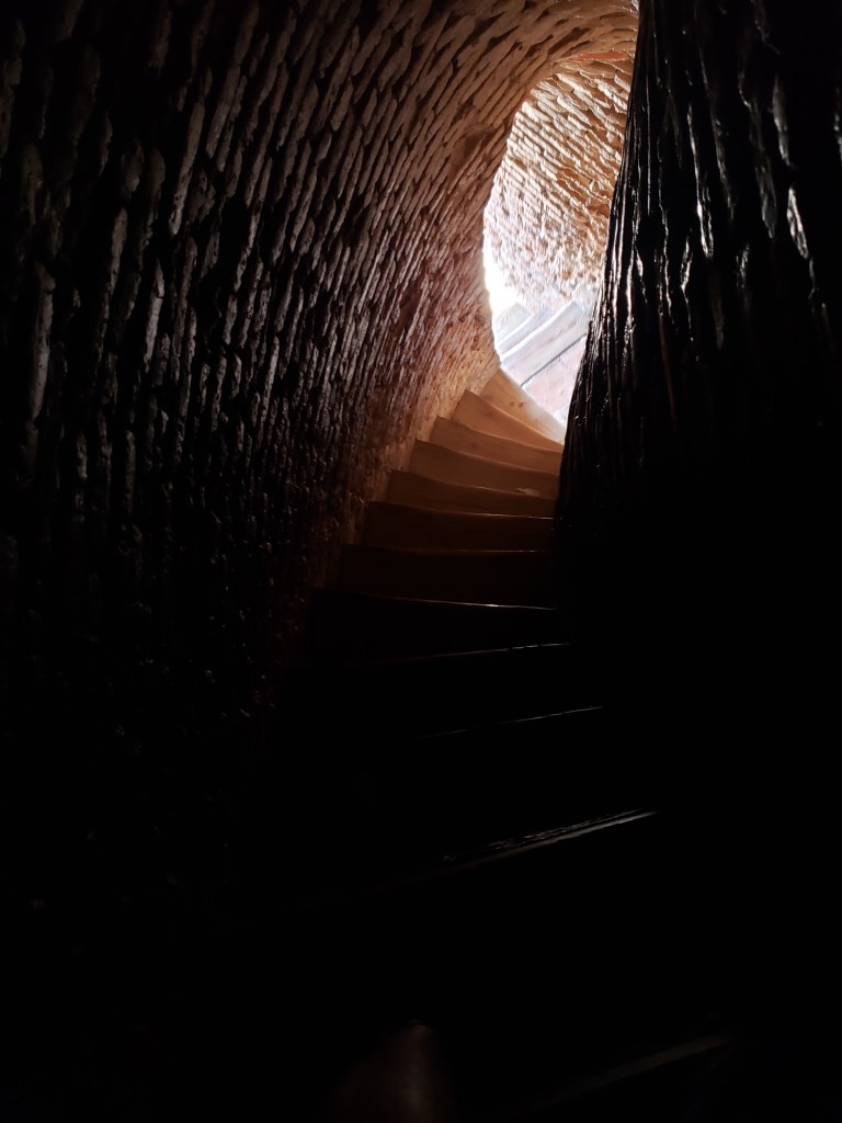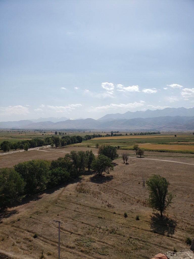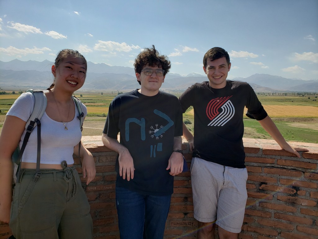 Today, our little group took a trip to Burana, about an hour and a half outside of Bishkek. There are located the ruins of an old Silk Road city which was called Balasagun, the most of which have been more or less lost to time. However, the watchtower minaret is still mostly intact. Standing at roughly 80 feet tall, the tower used to stand over 140 feet before an earthquake destroyed the top half somewhere in the 1400s. There is still a usable staircase within the tower (pictured below), which was frankly terrifying both up and down due to both the steepness and darkness, but the view from the top was worth it. I can only imagine both the climb and the view back when the tower was intact — given the flatness of the Kyrgyz plains, you could really see for miles in all directions. We also saw a yurt in the process of being built (more on that after next week) and noticed that the top section, or Tyukmuk, is the basis for the design of the Kyrgyz flag. I repped the Blazers today because I figured that this was a pretty cool spot for Wear in the World. What can I say –I need my 15 minutes of fame.
