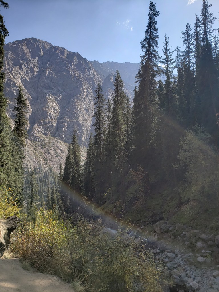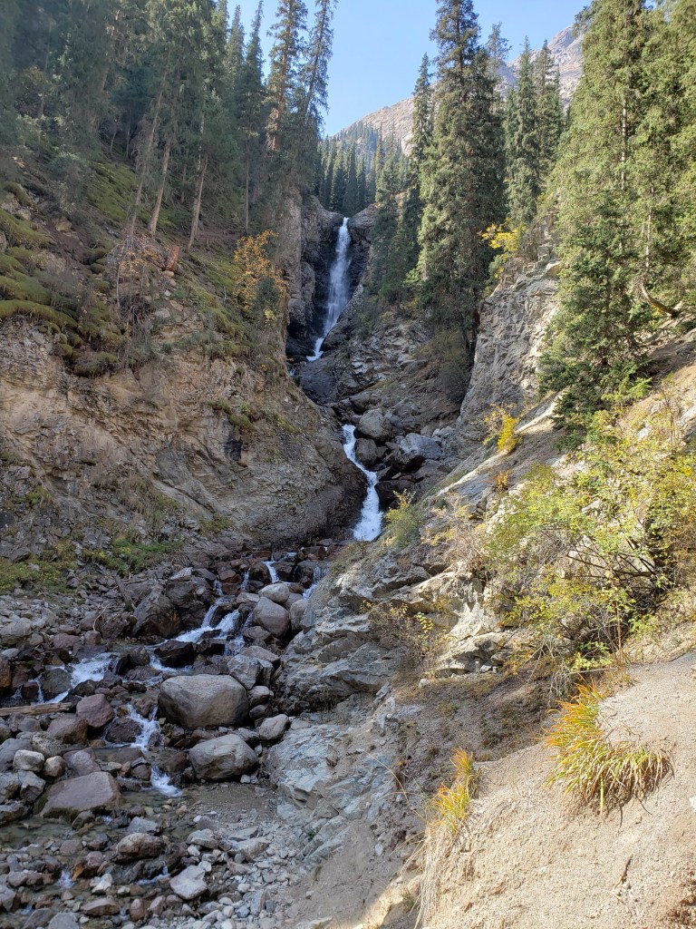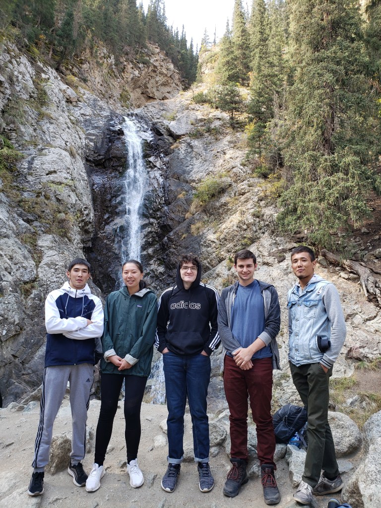 On our second full day, we visited the Barskoon River Valley, about two hours away from our village. Issyk-Kul, being an alpine lake, is naturally surrounded by mountains, most of which reaching a height of 10,000 feet or more. The Barskoon River Valley was located already around 6,000 feet up and was stunningly beautiful – once again, as though a CGI rendering of a fantasy world came to life. We ended up hiking around to some waterfalls, which involved at least 500-1000 vertical feet, and ate lunch near one of them.