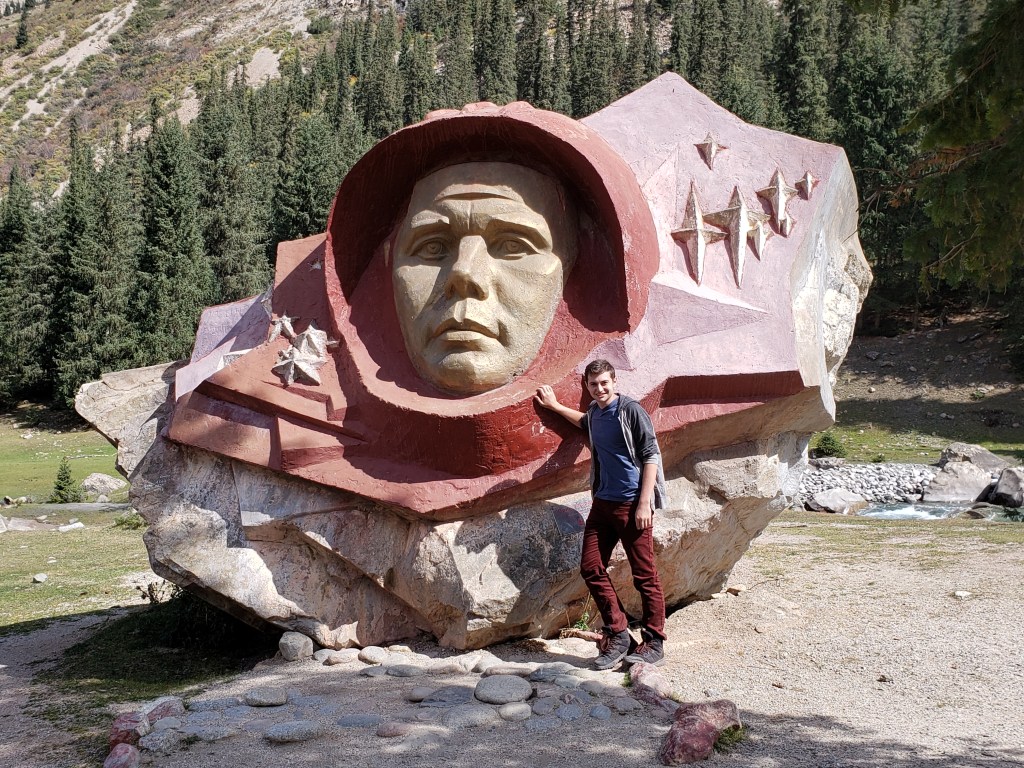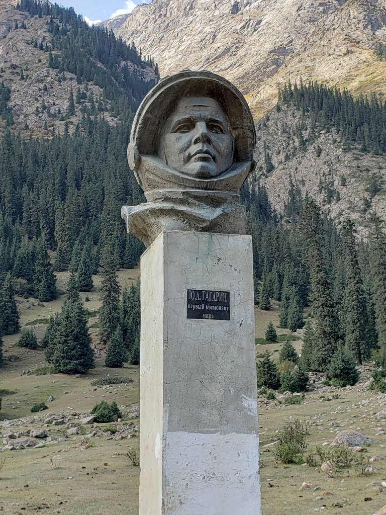 The interesting fact about the place we were hiking, though, was that which was related to the world-famous cosmonaut Yuri Gagarin, whose face you can see in two different installations in the photos from the valley. Gagarin was very Russian indeed, having been born near Smolensk, but who apparently loved the valley as a vacation spot. He stayed there soon after becoming the first human in space, and according to our guides, often came to spend time there whenever he had the chance to vacation. Therefore, there are two very cool Soviet-era representations of his face on opposing sides of the road to commemorate.