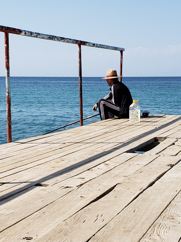 The final photo for the day was taken on a dock over the lake. We spent some time there before we made it home, and I was lucky to capture this image as the fisherman was quite active and talkative with us. Still, I think that it quite effectively demonstrates just how large Issyk-Kul is, in that you could easily be convinced that it was any of the world’s oceans from a glance.