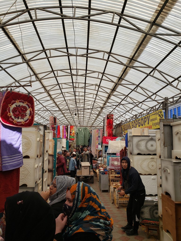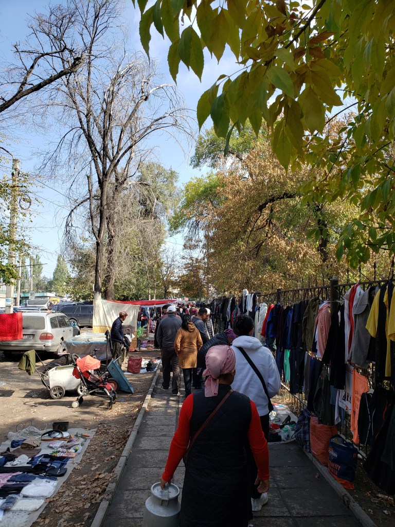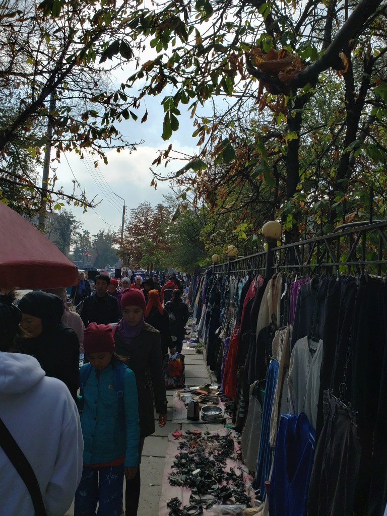 Today, I went to my first Kyrgyz bazaar with both American students and a (semi) local guide, Liam. Liam is a post-graduate student who has been living in Bishkek for over a year in order to become fluent in Kyrgyz, and offered to show us around Osh Bazaar, which he frequents. Osh is divided into three main sections: the Street Bazaar, the Food Market, and the official Bazaar area. The street bazaar (top two photos) is a truly random collection of clothing and junk along the many sidewalks surrounding the main Osh Bazaar area. Sellers stand or sit near their wares and are quick to talk to passers-by. I had a lot of fun chatting with the vendors and checking out what they had to sell. I definitely plan on going back to this area with some sort of bag to hold bigger items, because there was some cool stuff there that I just had no way of carrying with me.