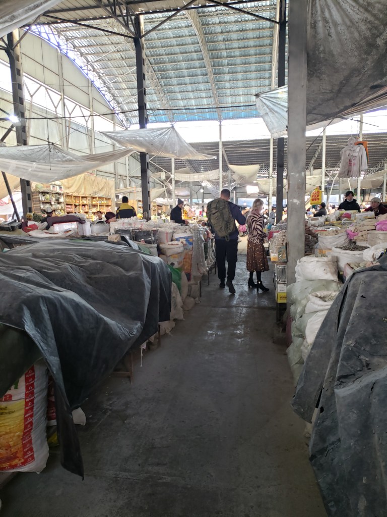 The official Osh bazaar is a winding maze of covered stalls split into many subsections, ranging from school supplies and children’s clothes to home décor, furniture, and antiques. The left-hand picture on the bottom row was taken in the home furnishing section just before leading into the textiles/traditional clothing area. It was amazing to wander through the corridors and just look at what was being sold, but the real highlight for me was the military surplus/antiques section. As it turns out, it’s a great place to buy a warm coat and boots, but it’s also a fantastic place for a military history buff like me. The right-hand picture on the bottom row is of the stall of a guy who has a truly vast collection of uniforms and other surplus items for sale — and he likes making people dress up in them for pictures. This, of course, was more than fine with me.