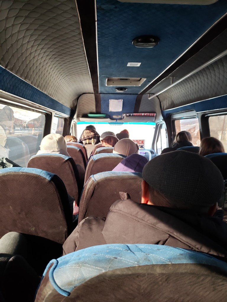 So after a lot of planning and figuring out schedules, I finally made the journey to meet him in person. Below, you can see the interior of the Express Marshrutka on the way there.