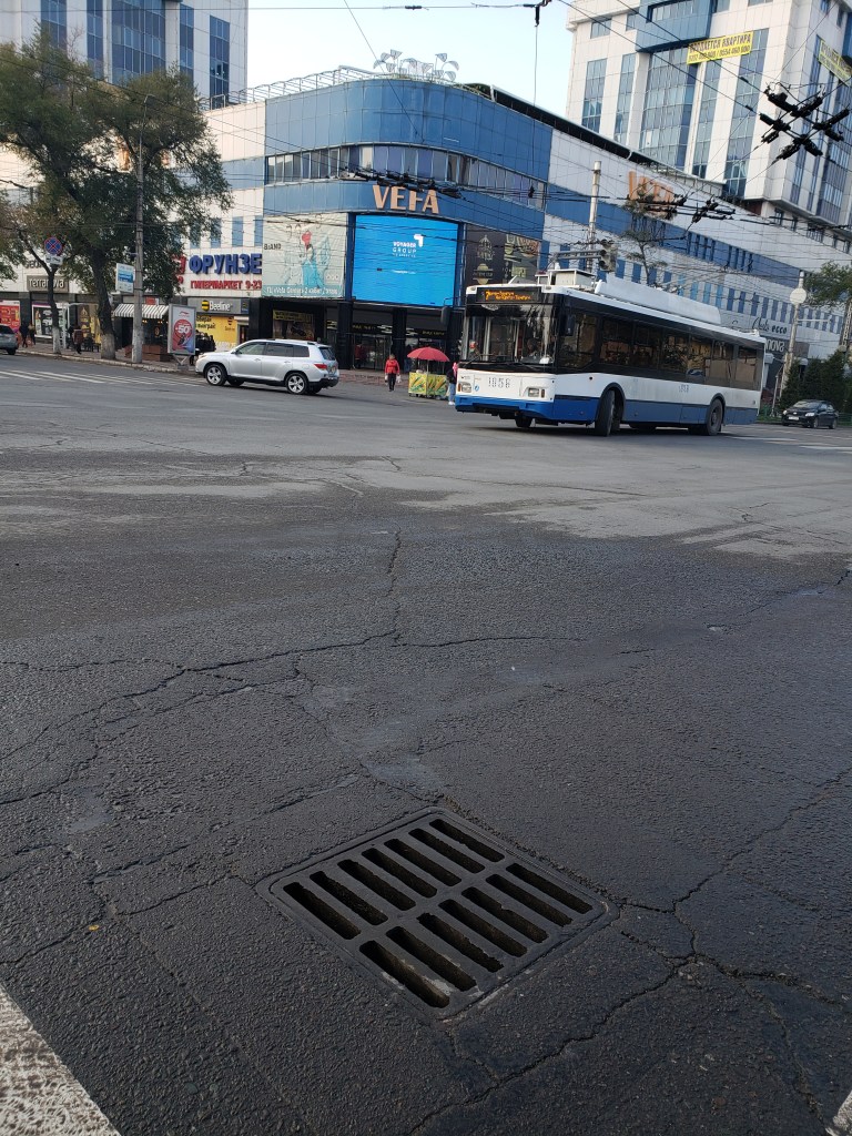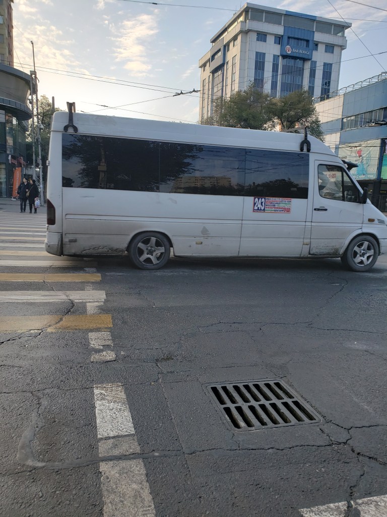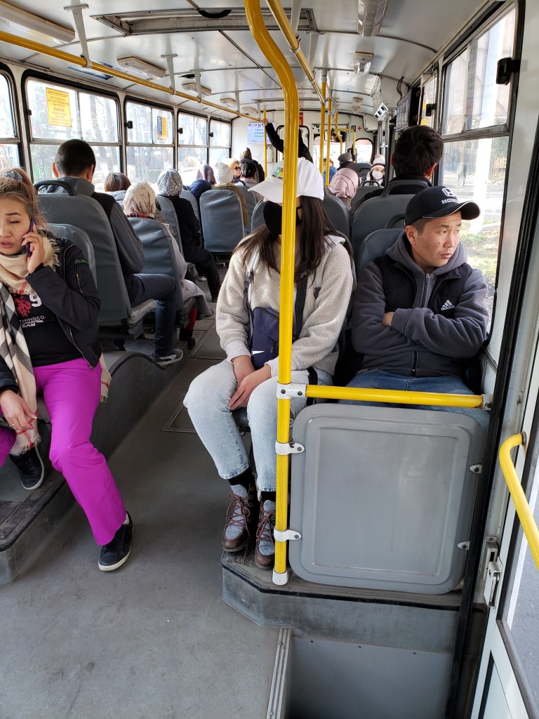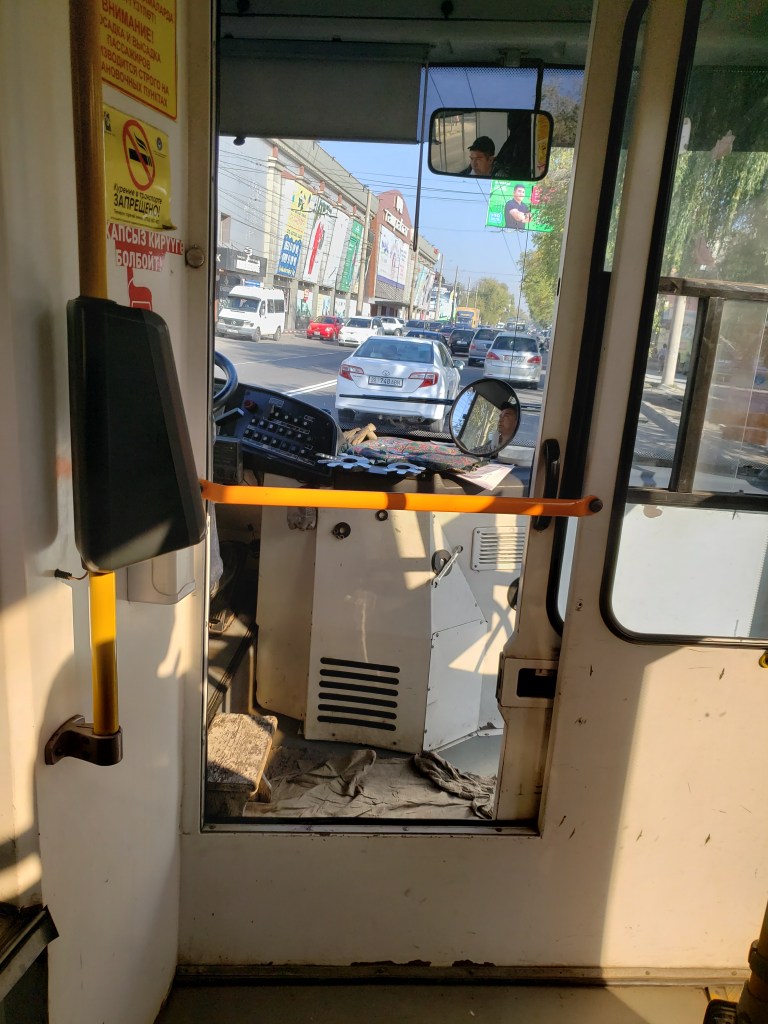 Since I’m only staying on Gorky street for two stops, I exclusively take the normal bus. Bus fare is 11 Som, which translates to 13 cents. They only accept cash, paid usually in coins. Here is a picture I took earlier in the year of the driver’s area – note the magnets to the right of the dash which hold coins for easy access.