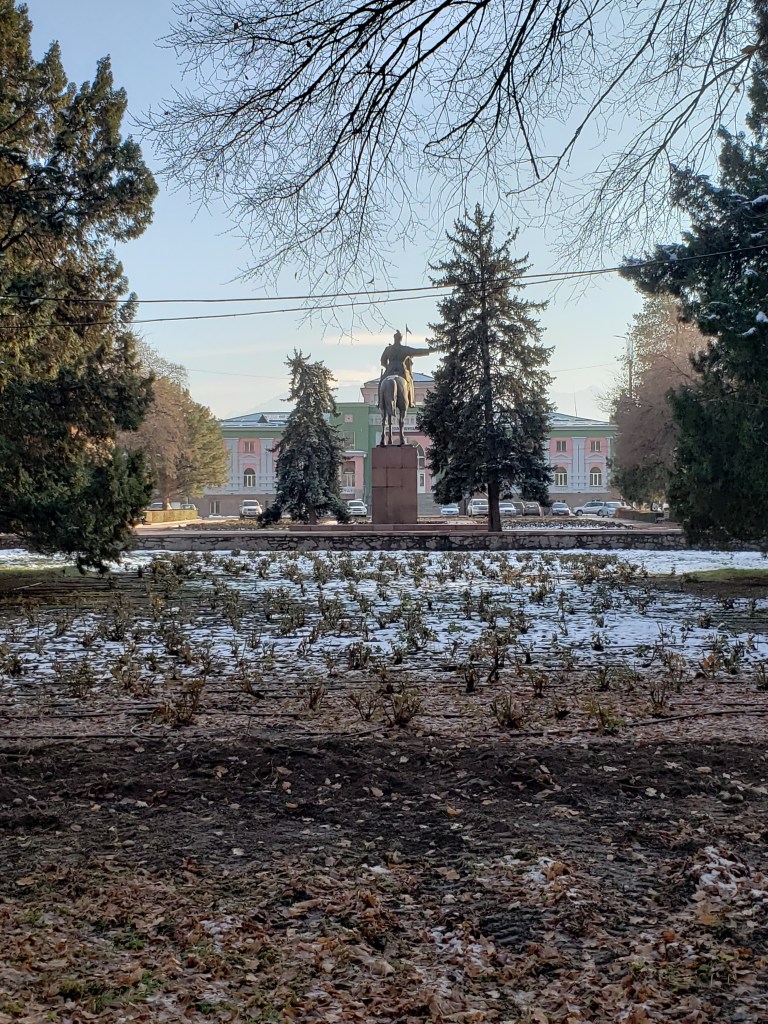 On this particular day, I elected to walk home and get some shots of the city with the sun out and the snow melting. Left, you can see the statue of Mikhail Frunze, after whom the Soviets named Bishkek during the 20th century. Behind his statue is the larger of the two railway stations in the city. Center is the station from the footbridge that crosses the tracks. Finally, you can see the view of the mountains from my room once I got home. I’ve been here three months, seeing those peaks every day, and it still hasn’t gotten old.
