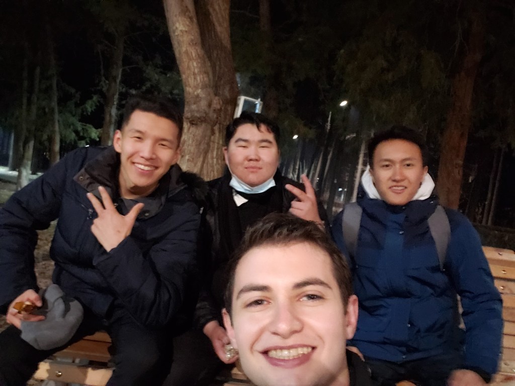 After I got back from the bazaar, I changed into some more athletic wear and headed out to play some basketball with friends. Unfortunately, WordPress wants me to pay them money to allow me to post videos, so you’ll just have to take my word that I kicked their butts on the court. We headed out to dinner afterward, though – here’s me with Beka (left), Amir (center), and Bakha (right). While Beka and Amir enjoy playing some pickup, Bakha is a real NBA fan. It’s been amazing to be able to chat hoops with someone in Russian, and I plan on bringing all three of them (but particularly Bakha) some Blazers gear when I return.