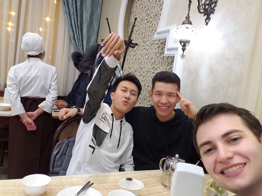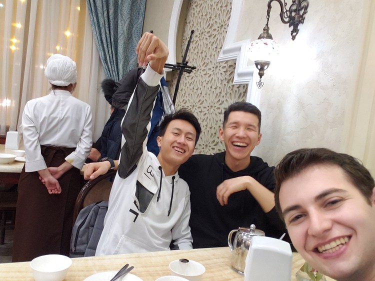 Here’s me, Bakha, and Beka in Cafe Faiza after basketball. Faiza is one of Bishkek’s older restaurants, having been founded in the mid-90s, and is still regarded as one of the best places to get Central Asian cuisine – including traditional Uyghur fare, which I highly recommend.